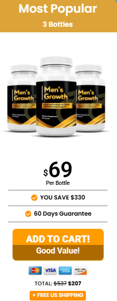Improves Overall Health: In addition to improving sexual performance, Mens Growth supports cardiovascular health, controls blood pressure, and increases physical endurance.